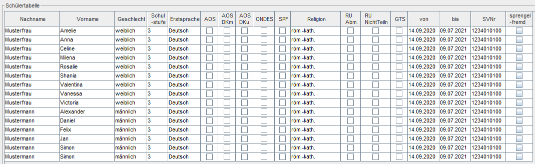 Schülertabelle